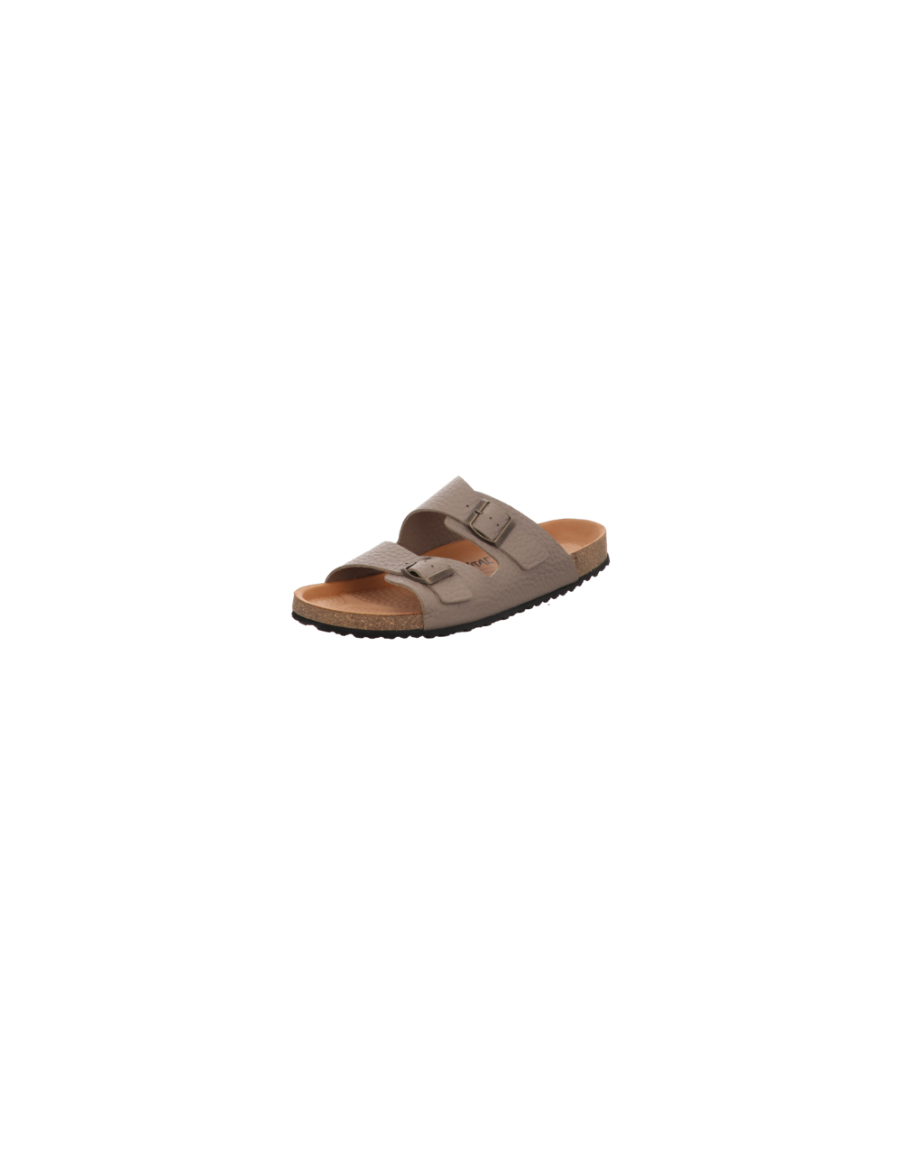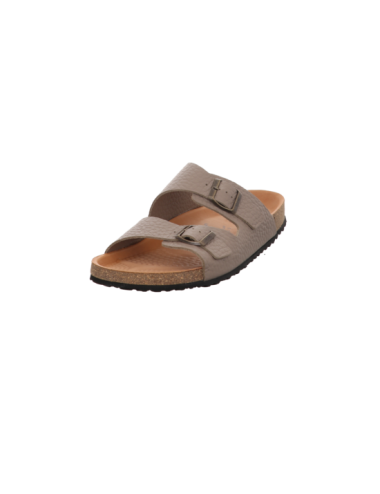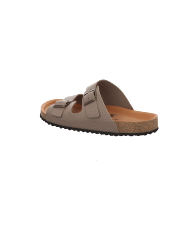 Vital Nature - ökologisch einwandfrei. Hier in beigen Glattleder mit zwei Klettverschlüßen und dem einzigartigen undeformierbaren VITAL Tieffußbett und seiner sanften Reflexzonenmassage. und Pu - Sohle.