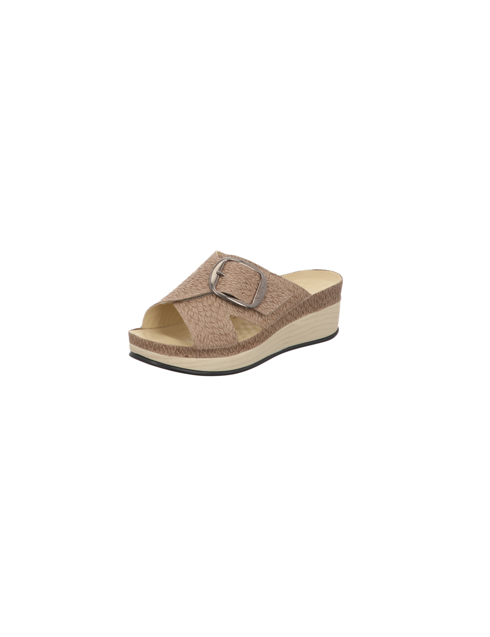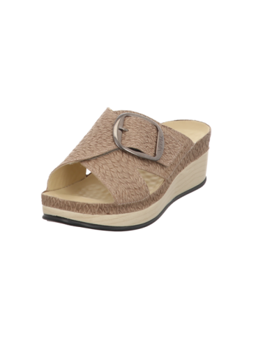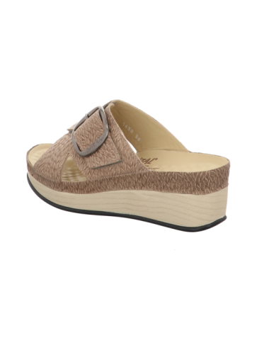 Lara- Modelle Eine neue modische Linie auf 5 cm Absatz. Dieser Pantoffel in einem wunderschönen beigen Rauhleder hat zwei verstellbare Klettverschlüsse. Das Futter ist aus naturgegerbtem Kalbleder und daher frei von jeglichen Schadstoffen.